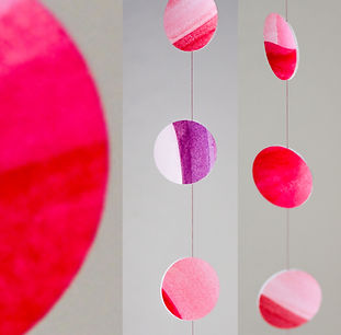 Diese Girlande entsteht aus meinen handgemalten Bildern und wird von mir liebevoll zu einem einzigartigen Unikat verarbeitet. Je nach Gestaltung sind die Elemente geklebt oder genäht, wodurch jede Girlande ihre ganz eigene Besonderheit erhält. Mit einer Länge von ca. 1,80 m und einem Durchmesser der Punkte von etwa 2,5 cm eignet sie sich perfekt als Fensterdekoration oder als besonderer Blickfang im Wohnraum. Kreativ, persönlich und nachhaltig – ein kleines Kunstwerk für dein Zuhause.